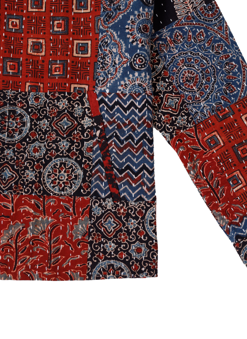 AJRAKH PATCHWORK JACKET WITH KANTHA DETAILS