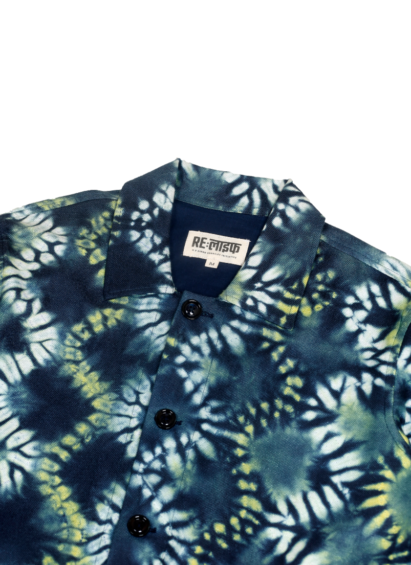 This jacket is crafted from textured cotton end cuts and reimagined into a stunning piece of contemporary sustainable design. Designed with intricate shibori details with flat collar and double welt pocket This piece is our attempt at showcasing the potential of conscious design.