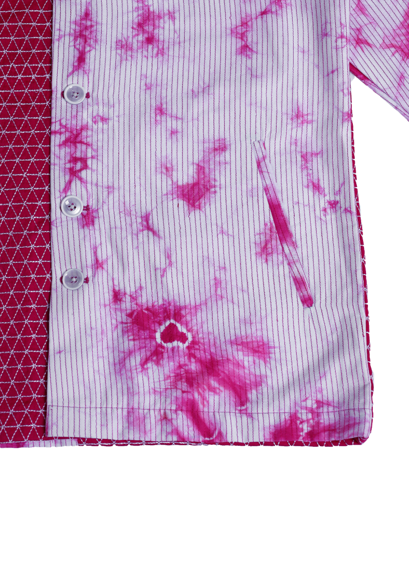 HALF & HALF JACKET WITH TAGAI AND TIE-DYE DETAILS