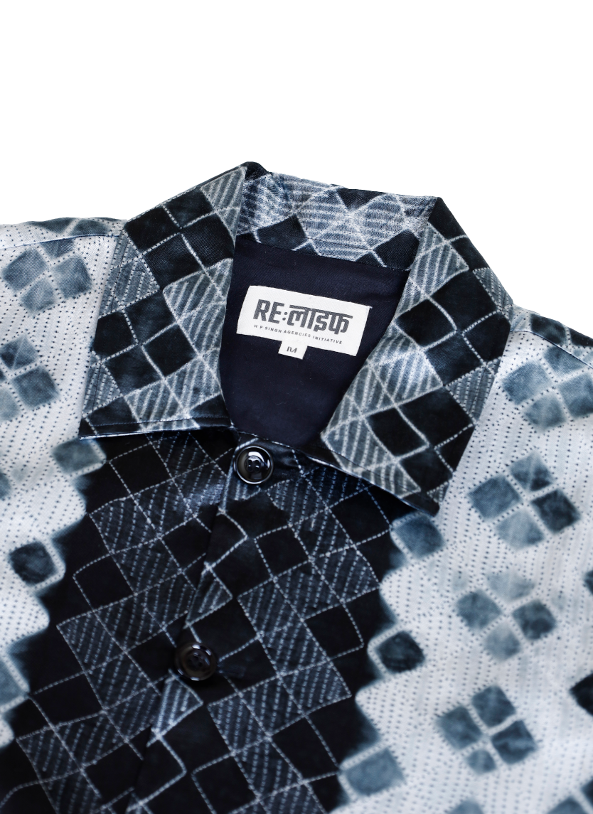 The material used was leftover and defected end cuts and we reimagined it using shibori dyeing technique to create a one of a kind piece.